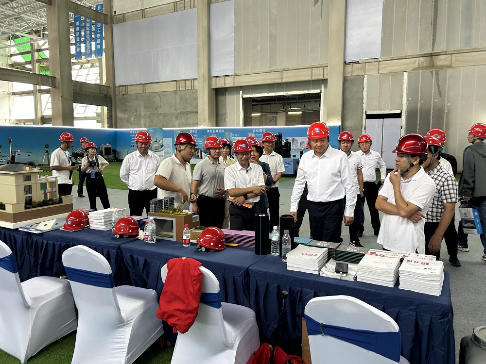 住房和城鄉(xiāng)建設(shè)部建筑市場監(jiān)管司副司長廖玉平等近距離了解東方雨虹智能型卷材攤鋪車的現(xiàn)場實操,并對其在人機協(xié)作、提高工效等方面的實用性給予高度認可。